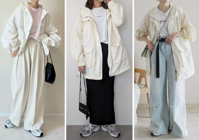 足元は白スニーカーで、春らしく軽快に仕上げて。