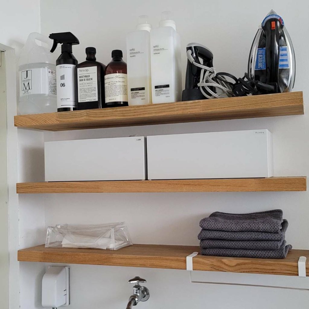水回りのアイテムは、掃除の手間やぬめり、カビ防止のため、浮かせる収納を活用するのがおすすめ。100均などでも浮かせる収納のアイテムがたくさん出ているので、是非チェックしてみて。