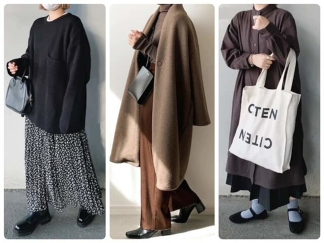 ドルマンスリーブやルーズ感のあるシルエットによって、きれいめコーデに抜け感を演出します。
