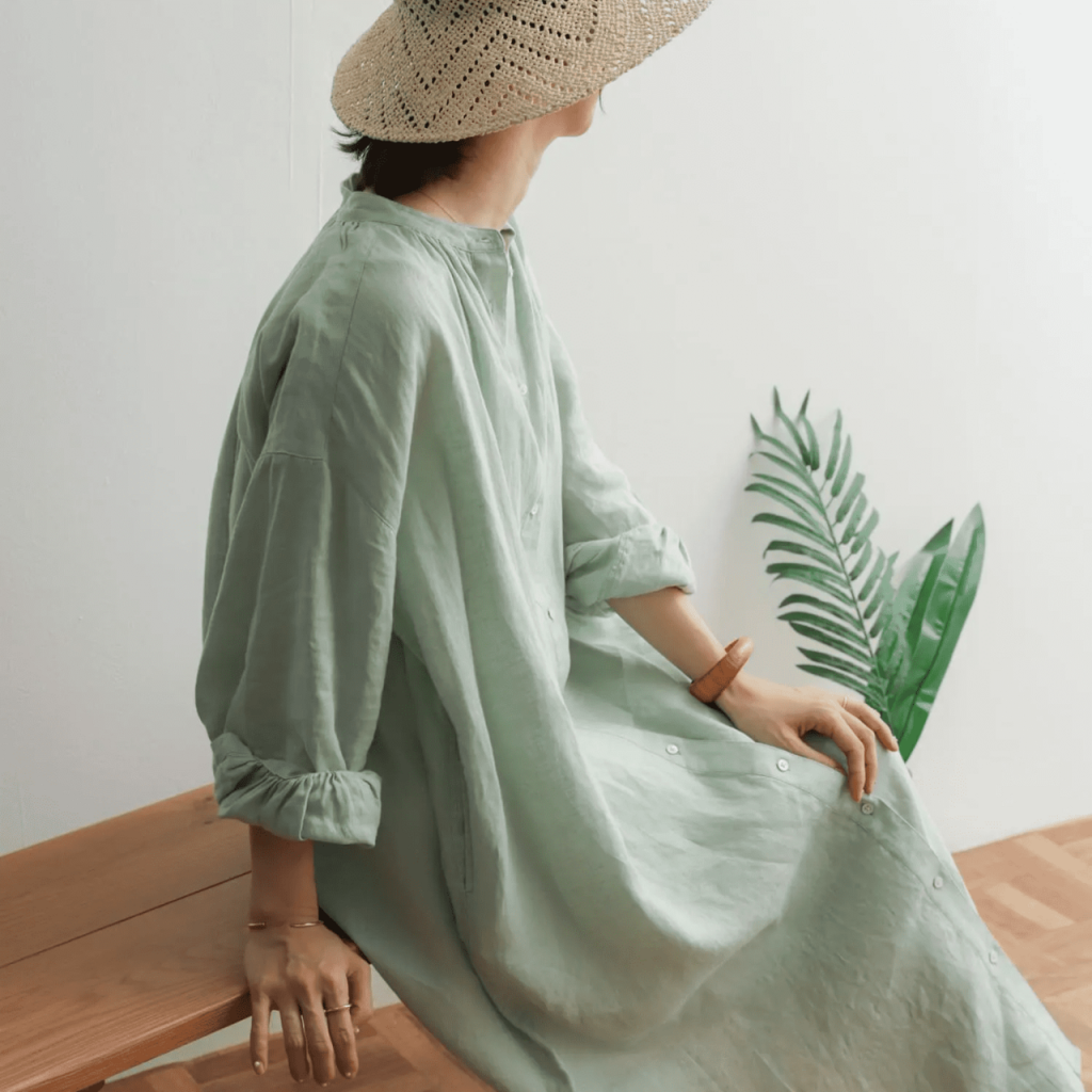 夏の旅行におすすめの大人カジュアルワンピース⑤リネンギャザーワンピース