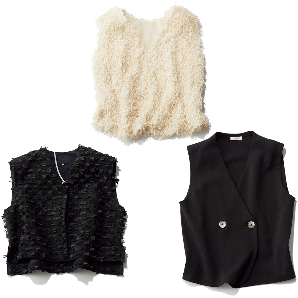 一枚では着られない〝インナーありき〟なトレンドの透け素材やベストは、実質素肌に一番触れるのがタンクやブラキャミで、ストレスフリー! それでいて表向きにはよそ行き感満点です。