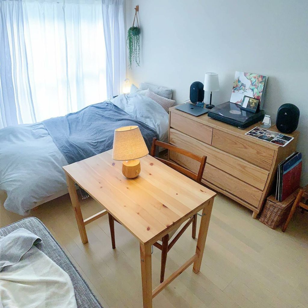 7畳の小さな1Kを、ぬくもりのある癒しの空間にするために。インテリアになじむ木の家具をこだわってセレクトし、自分のお気に入りのものを楽しむスペースをしっかりと確保した、一人暮らしのお部屋を拝見しました。