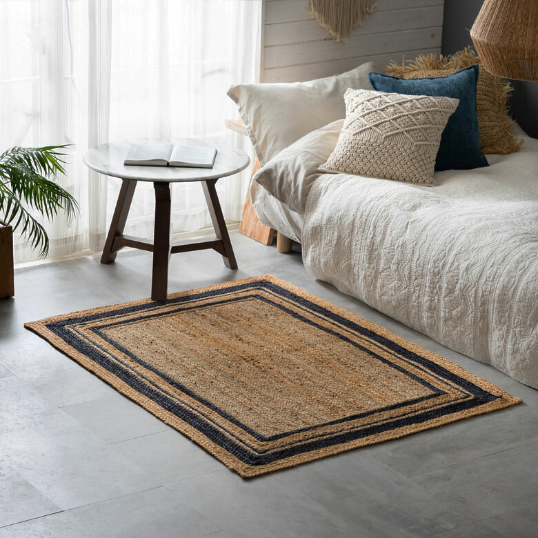 天然素材をお部屋の広い面積に取り入れることで、一気に夏仕様に早変わり。ライン入りのジュートラグは、ナチュラルな質感の中にもスタイリッシュな雰囲気を醸し出してくれます。ネイビーとホワイトの2色展開。