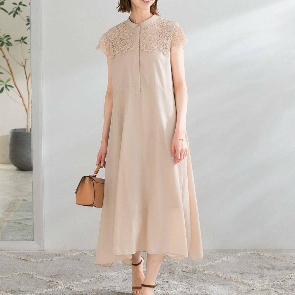 ラストにご紹介する旅行におすすめのシワになりにくいワンピースは、ヨーク部分のレースが上品なデザイン♪