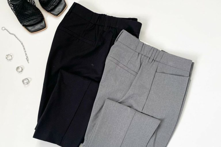 着回しやすいのは黒、夏らしさで選ぶならくすんだブルーのようにも見えるグレー。コーデ全体を明るく見せつつ、落ち着きもあります。ハイテクスニーカーを合わせて、甘辛な夏コーデに。