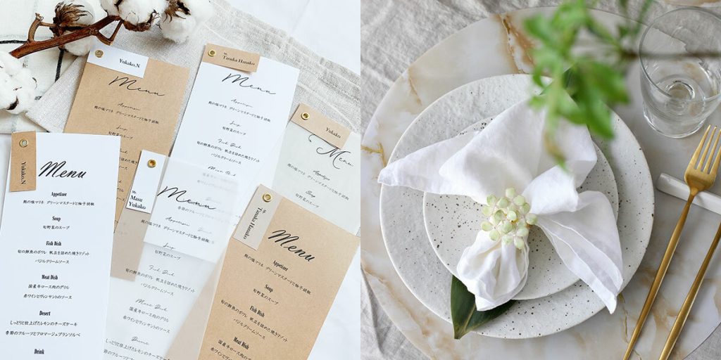 家族紹介や馴れ初めなど、食事会での話題のきっかけになる内容が盛りだくさん。セミオーダー制なのでプリントされた状態で手元に届きます。