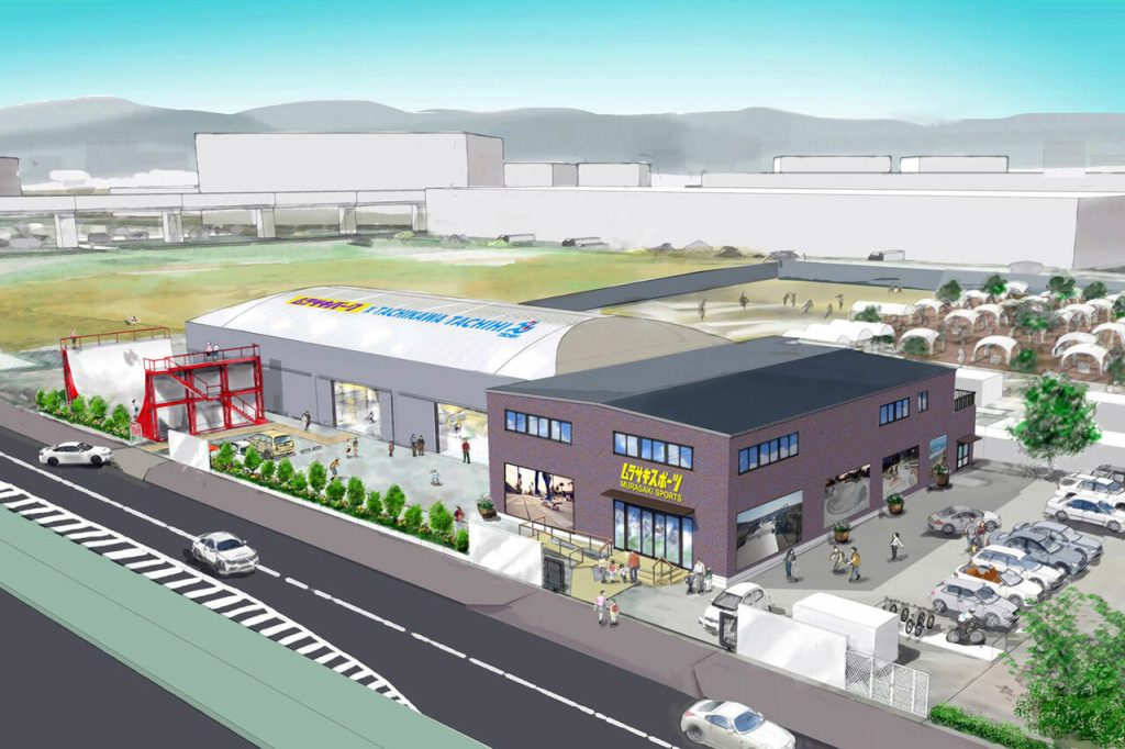 冷房完備のスケートパーク、大型店舗を備える/ムラサキパーク立川立飛