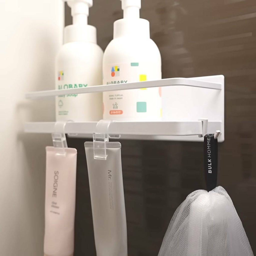柵部分にフックを引っ掛ければ、洗顔フォームなどのチューブ類もまとめられるそうです。