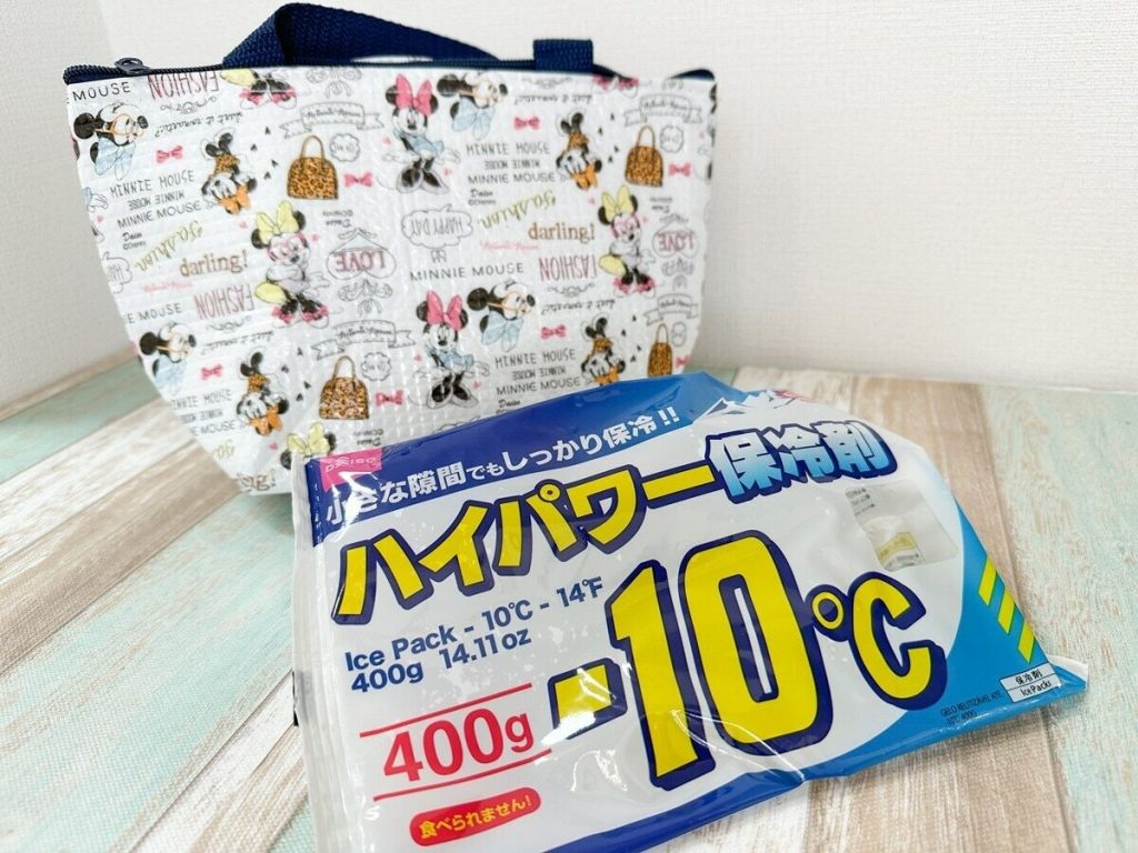 ダイソーの「保冷バッグ」と「ハイパワー 保冷剤」各100円(税込110円)