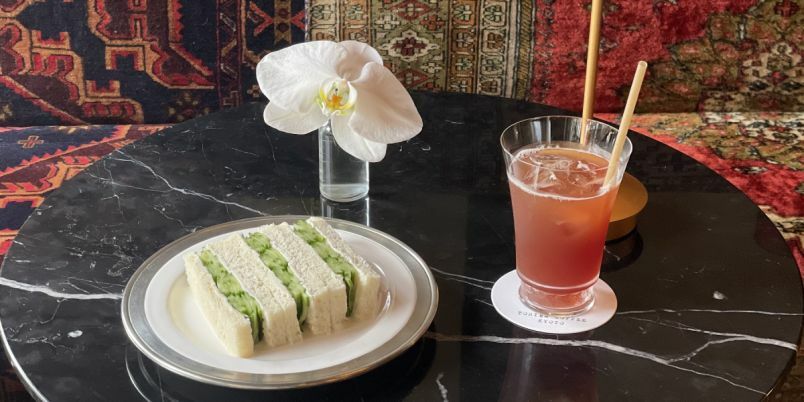 写真の「ロイヤルスタイルきゅうりサンド」は、オーナーの鳥羽さんがイギリス留学時代によく食べた、大好きだった味を再現したという一品。シンプルで滋味深いおいしさは、クセになりそうです。