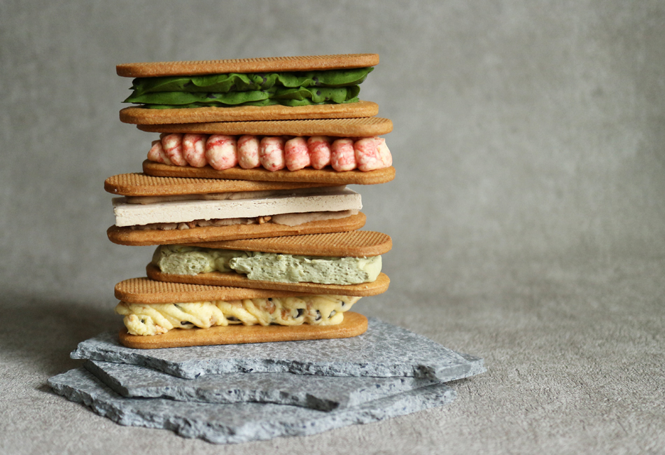 そんな感性をバターサンドに落とし込んだきっかけは「むかし食べたクッキーサンドアイスがすごく好きで、バターサンドも凍ったまま食べたらクッキーがサクサクして美味しいのではないか」というひらめきから。冷凍でも食べられるように、平山シェフの挑戦が始まりました。