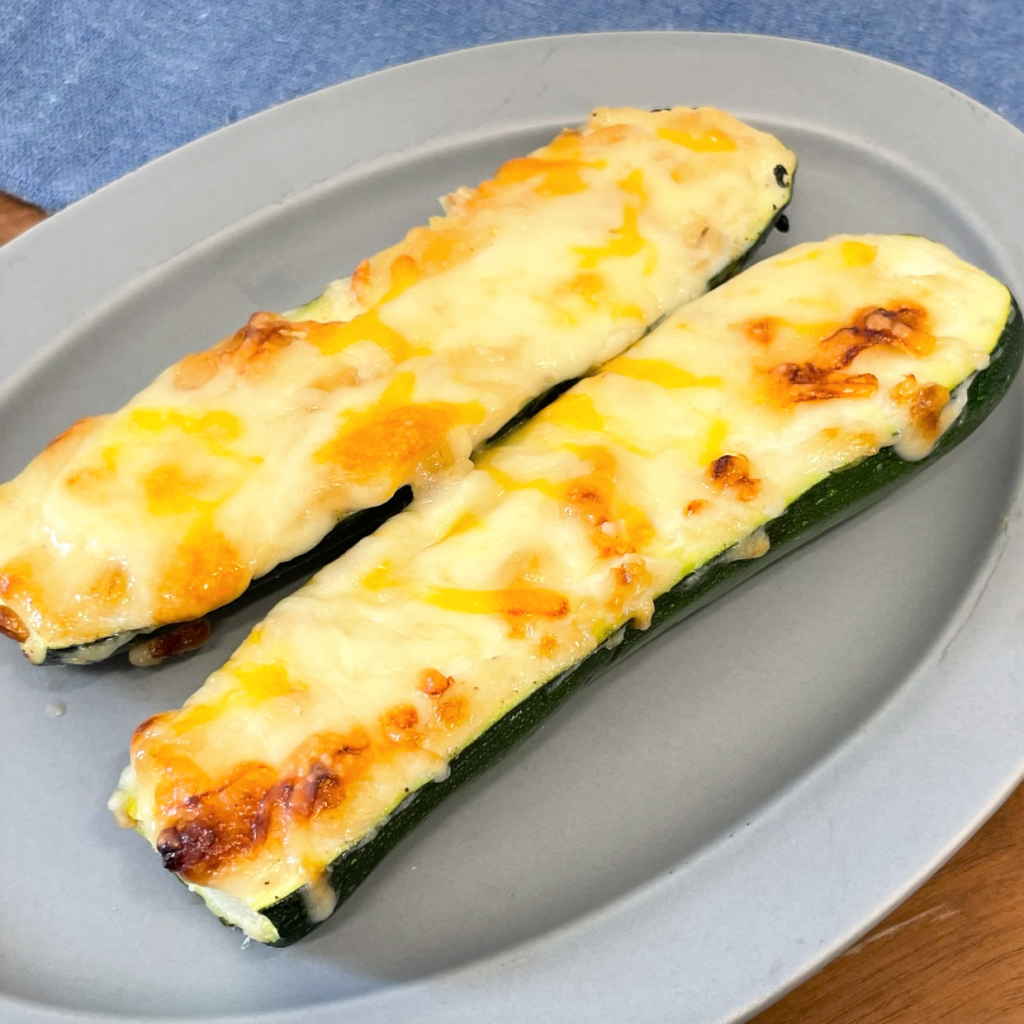 ズッキーニに味噌マヨソースを塗ってチーズをかけたら焼くだけ。