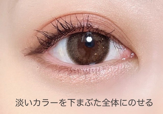 淡いピンクのライナーで、涙袋の下に細くラインを描いて影を仕込んで、ふっくらとした自然な立体感を演出。若々しい印象に。