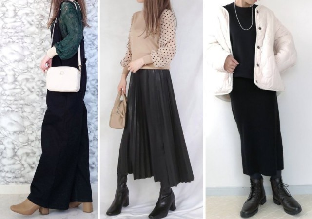 秋はボウタイブラウスとあわせてクラシカルに、季節が進んだらボリュームニットとあわせることで上品見えが確実!