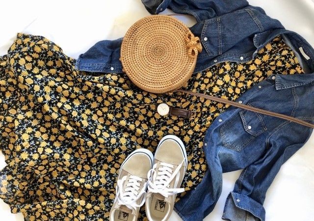 公園や水族館を巡るお散歩のような遠足は、清楚なネイビールックでもしっくり。