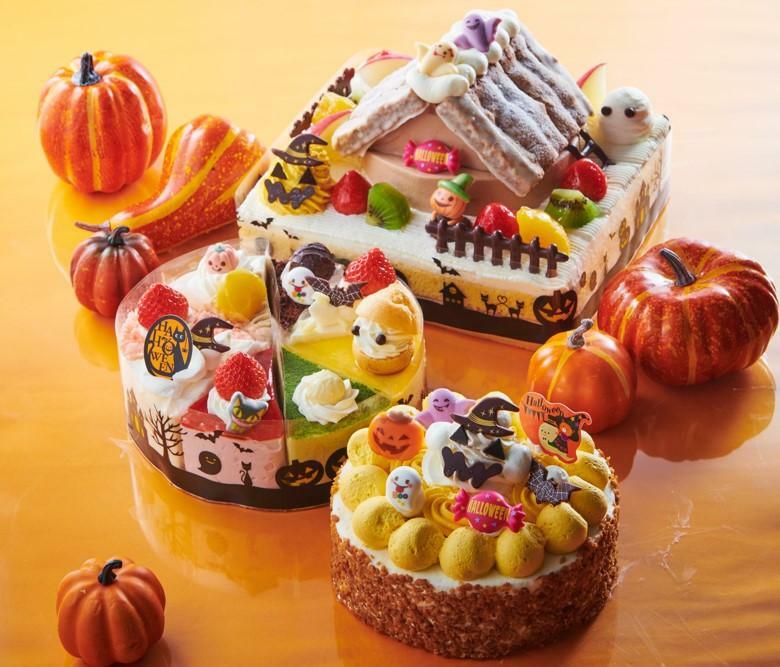 ホイップクリーム、洋梨・黄桃のシロップ漬け、苺をスポンジでサンド。ココアスポンジとチョコクリームで作ったおばけの家をのせ、色とりどりのフルーツやおばけたちを装飾しました。サイズは22cm×20cm、販売期間は10月27日から31日までで、価格は5832円です。