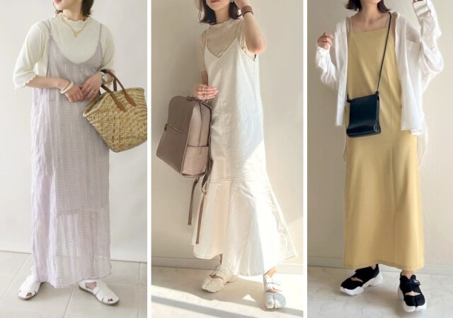 重ね着でオシャレしてる感が出せるMARWのサロペットは年中愛用、タンクやシアー素材で女性らしくがセオリー。