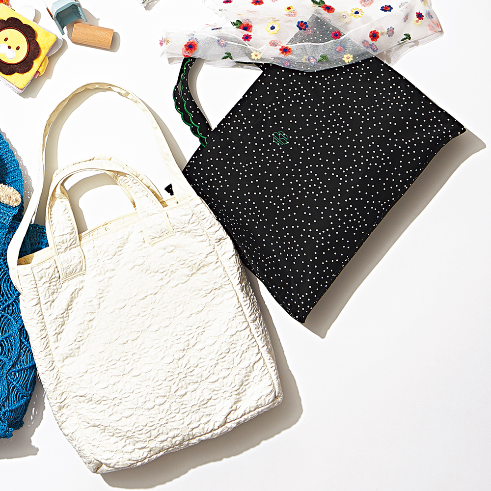 ブラウスやスカートでも人気のポコポコは、持つだけで今どきになれるとサブバッグ界でも大人気! スナイデルのインフレイトトートバッグは、写真のほかに黒と茶の展開あり。