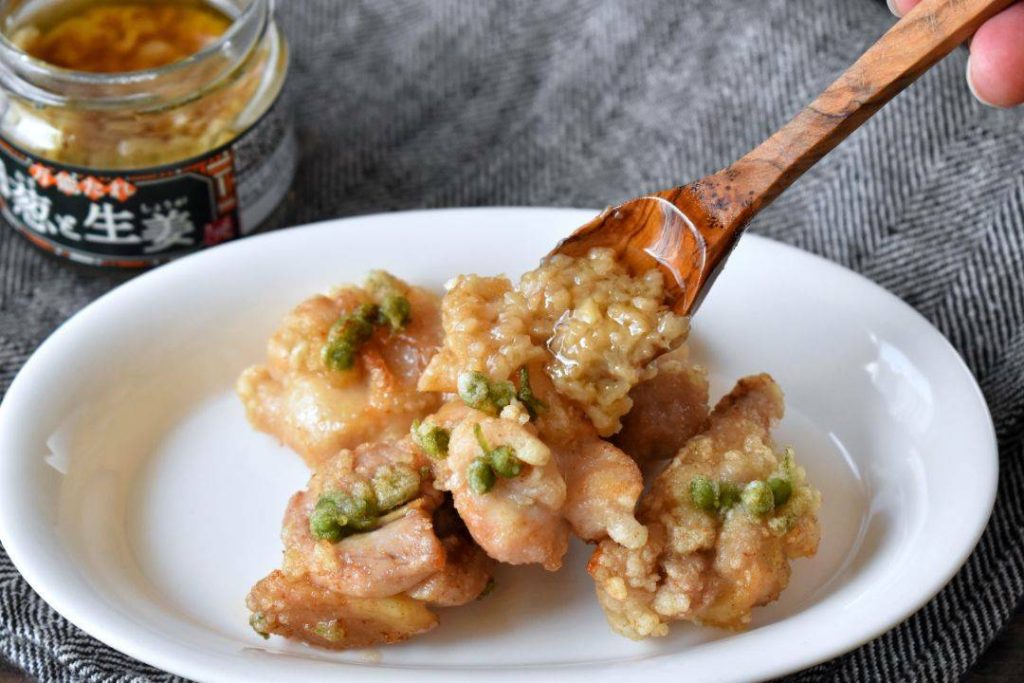 「葱と生姜」はごはんにかけるのと同様に、いろいろな料理にちょいがけすることで味わいのレパートリーを広げることができます。揚げ物にもよく合い、から揚げにかけると風味と旨味が加わってあと味がさわやか。揚げ物の新しい味わいに出会えます。