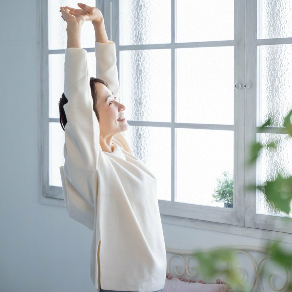 朝の静けさや、美しさの中で深呼吸や伸びをすると脳にとってもリラックス効果があり、幸福感を高めてくれるだけでなく、1日のパフォーマンスもアップさせてくれます。
