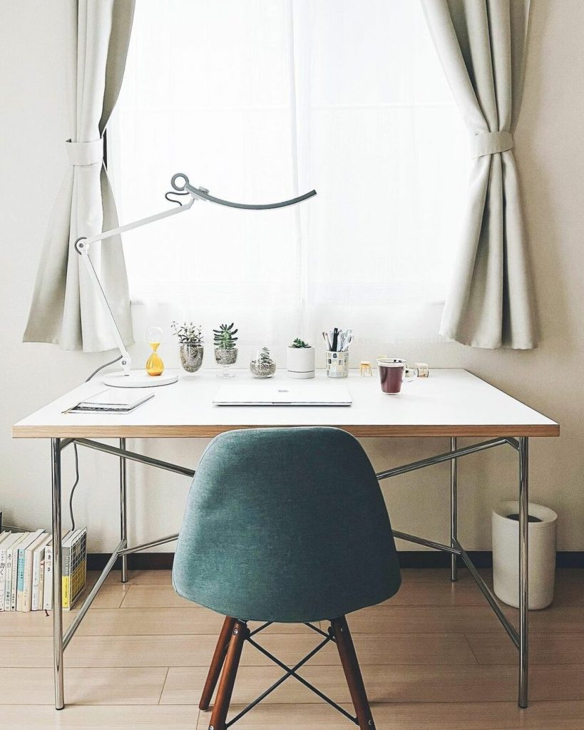 「白い天板で部屋が明るく見えるところや、ナチュラルなウッドの縁が気に入っています。シンプルなデザインで、不要な要素がなく飽きないですし、高さ調整や、スタンディングデスクにすることもできます。シンプルで使いやすいところが一番のポイントでした」