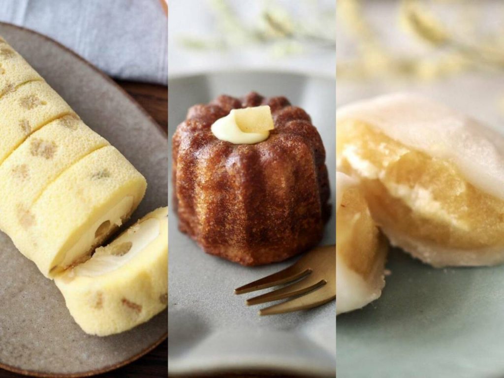 「おいもさんのカヌレ」「おいもさんのお芋大福」「おいもさんのもち食感ロール(紅はるか)」の3種類がラインアップ。ほっこり甘いおいものおいしさを、さまざまな食感とともに楽しめる秋スイーツですよ。