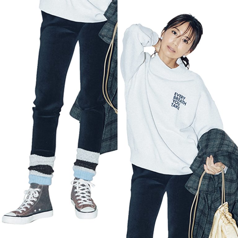 今年流行のレギンス使いで露出をダウンして、大人女子でも着こなせるカジュアルコーデにしていますね。