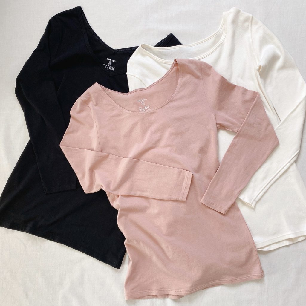 そろそろ冬用のインナーが気になるロカリ編集部も、ホットコットをお試しさせていただきました。毎年当たり前のように化繊インナーを着ていましたが、年齢を重ねるとともに乾燥して肌がかゆくなるように…。肌のうるおいを逃しにくい綿混インナーは救世主的存在です。心なしか、ピンクを着ると見た目からあたたかい気持ちになるのでおすすめ!