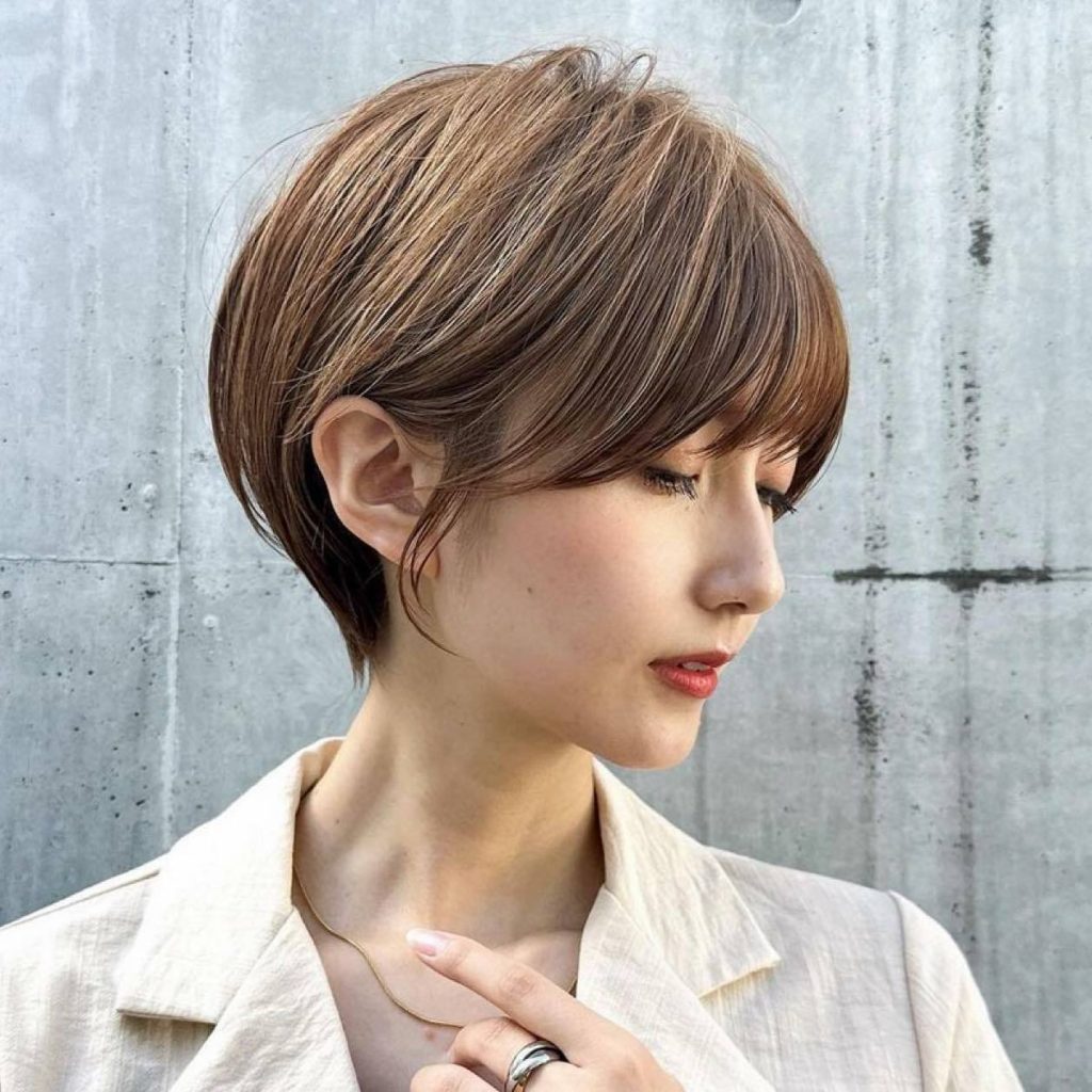 幼見えしそうなイメージもあるショートヘアですが、絶妙な“重軽バランス”を演出することで、大人っぽく清楚な雰囲気に仕上がります。