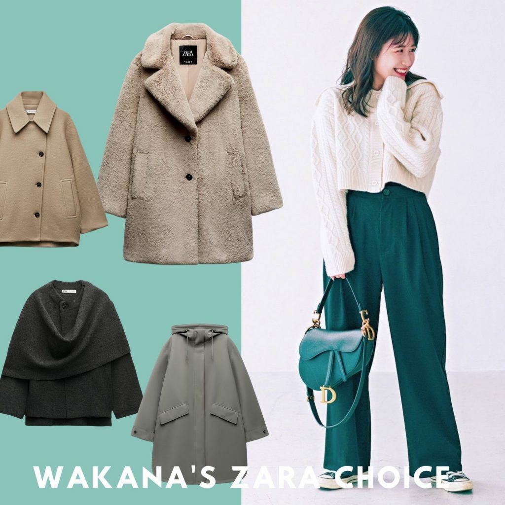 柔らかいベージュカラーのコートに、斜めに並んだボタンがほんのりモードさをプラス。洒落感を演出してくれます。また、ケープスリーブで肉厚ニットの日も窮屈になりにくいので、真冬の間も便利。長く楽しめます。ZW COLLECTION ショートウールブレンド コート¥25,990(ザラ)