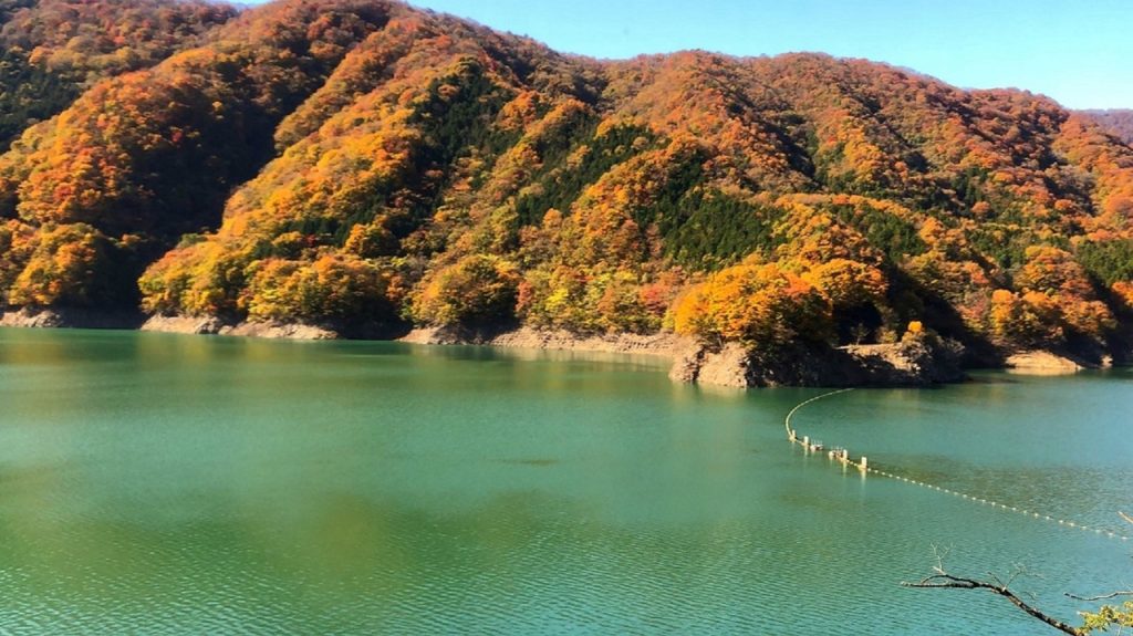 山全体が紅葉に染まる五十里ダム