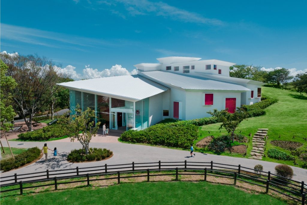 純白の外観が印象的な建物は建築家・隈研吾氏が設計。館内にはアートディレクター・くぼしまりお氏がデザイン監修した「いちご色」の世界が広がります。