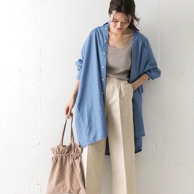 程よいハリ感と厚みのある生地でありながら、軽やかで着心地◎。ゆったりとしたオーバーサイズシルエットに長めの丈で、リラクシーに着られるアイテムです。