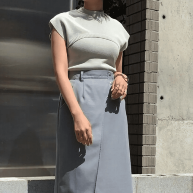 もっちりとしたダンボールニット素材は、柔らかく軽やかで着心地も◎。サイドのジップを開ければスリット風にもアレンジできる、レイヤードコーデにもぴったりのアイテムです。
