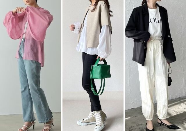 キレイめパンツやパンプスを合わせるだけで、オフィスコーデの完成です。