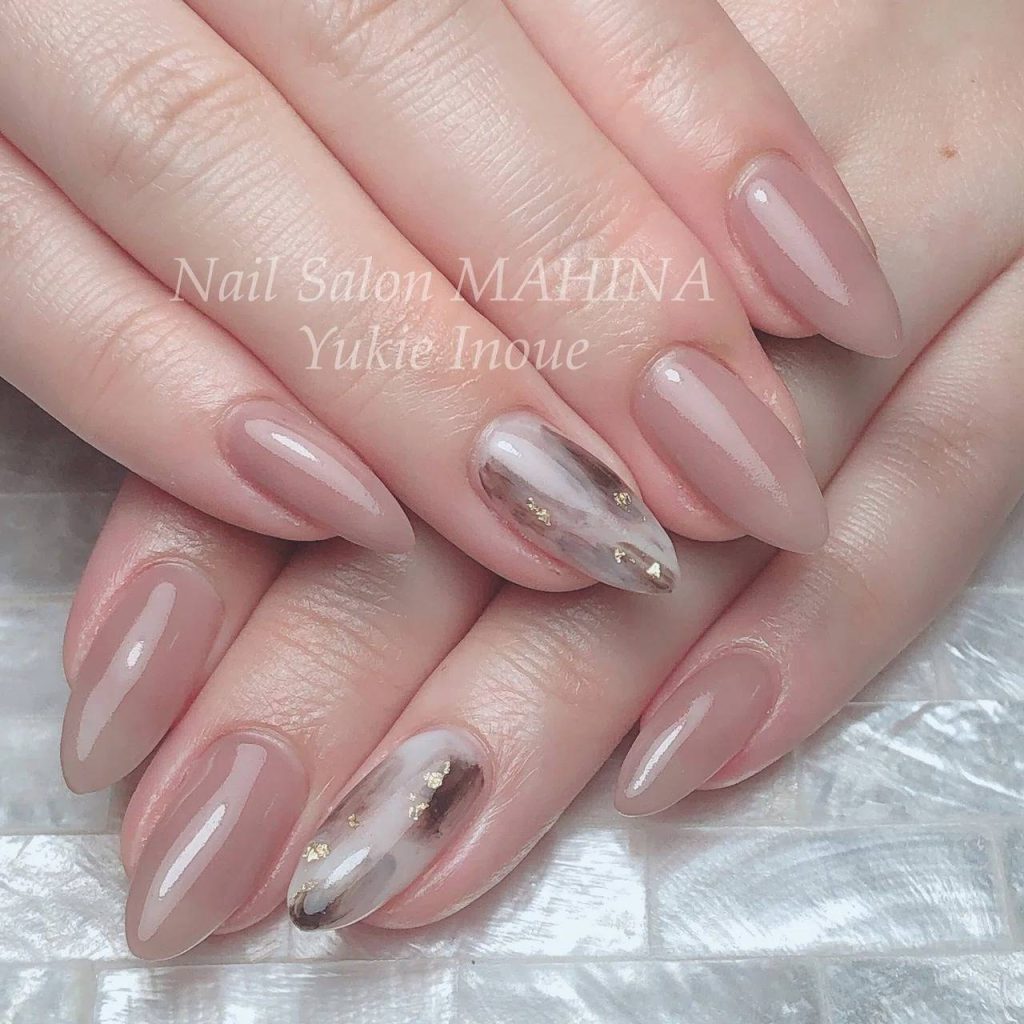ピンクブラウンやグレージュなど、落ち着いた色でまとめたネイルデザインも、悪目立ちしにくいのでおすすめです。