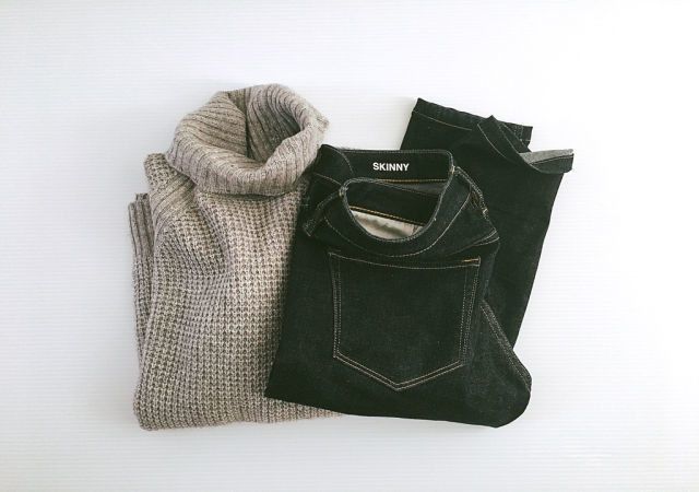 デニムとニットというカジュアル度高めの着こなしも、ふんわりと広がったペプラムシルエットのコートを羽織れば一気にオトナかわいい着こなしにチェンジ。