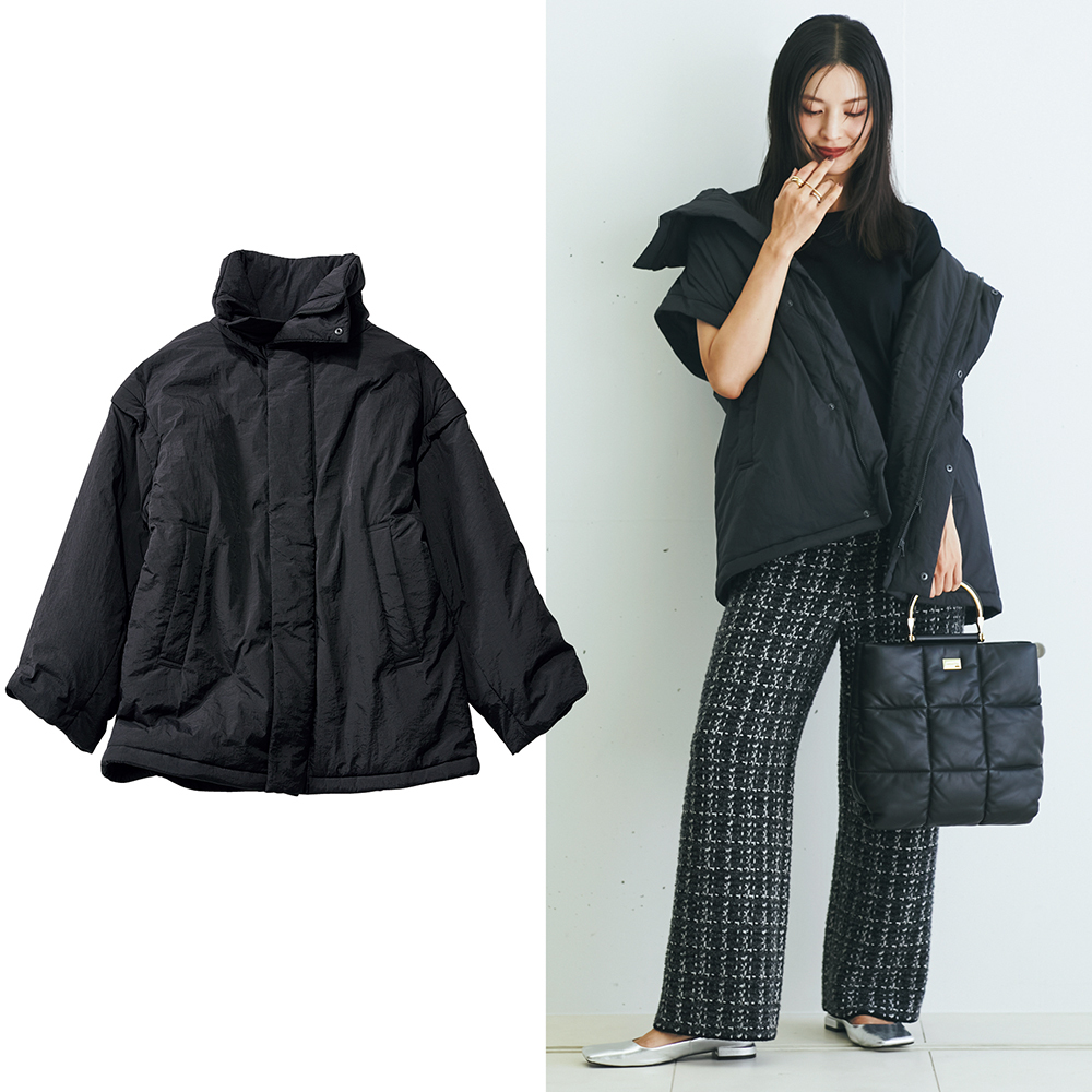 昨今のジレ流行で目が慣れた今年こそ「袖取れアウター」が狙い目!袖なしでレイヤードを楽しめ、防寒具合を調整できて季節をまたいで審美的・実用的にも活躍間違いなし。今回は、「2WAY黒ダウン」の着回しコーデ3選をご紹介します。