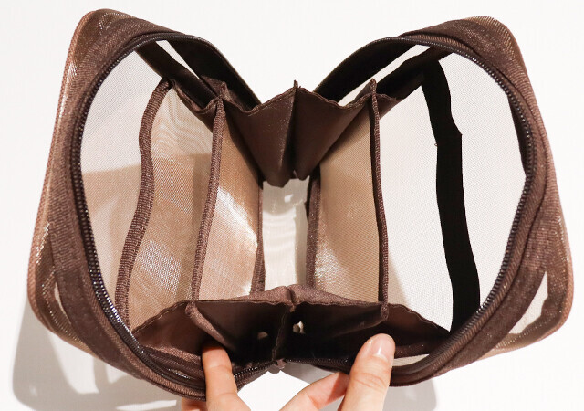 驚きの収納力!キャンドゥの『メッシュ縦型ポーチ BR』