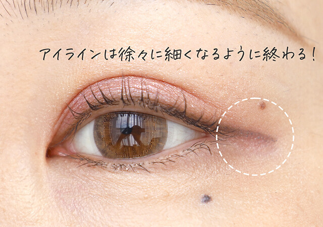 ベーシックなピンクベージュだからこそ、あえて筆で輪郭をとりながら塗ることで上品さに不可欠な清潔感もプラスされます。
