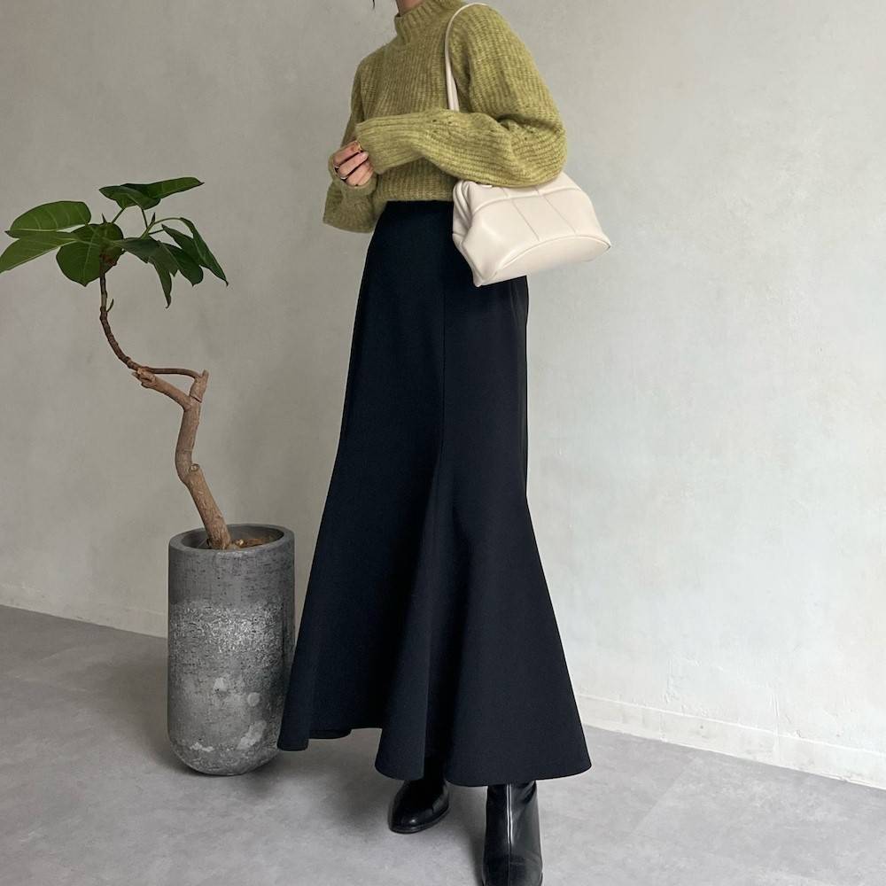【初冬編】いい女見えする黒スカートコーデ⑤カラーニット×マーメイドスカート