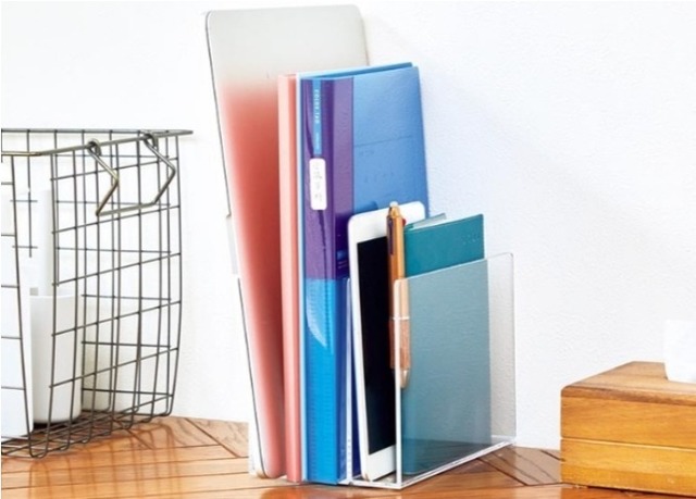 それは、100均で手に入るスチール製のブックエンドを活用すること。ブックエンドを逆さにして棚などのすき間に差し込みます。その上にティッシュケースを取り付ければ、マグネットが使えない場所でも設置可能になりますよ。