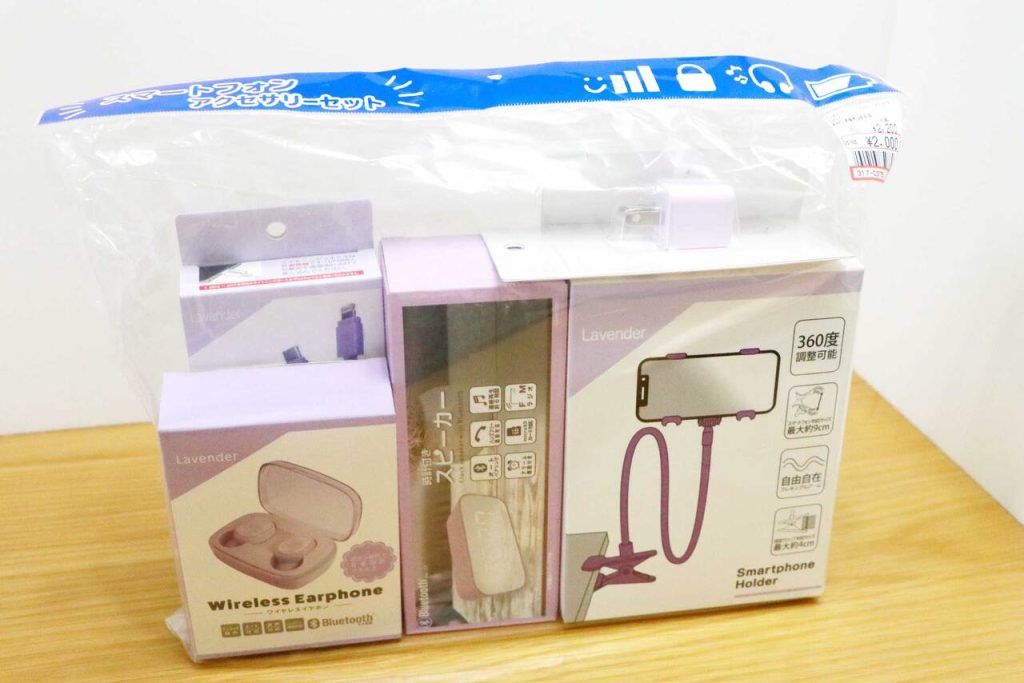 スピーカーやイヤホンなど、いろいろ入ってお値段は税込2,200円とお安くなっています。