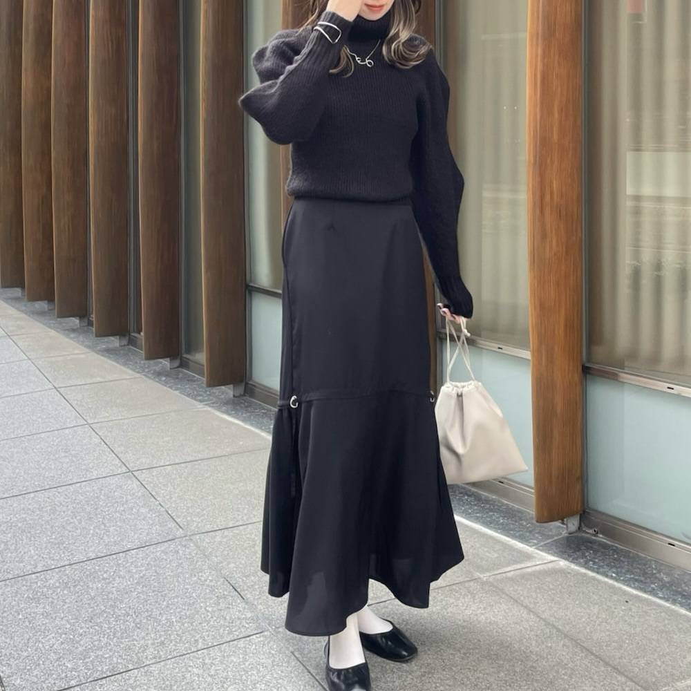 ハイネックニットにマーメイドスカートを合わせれば、スタイルアップ効果が期待できますよ♡