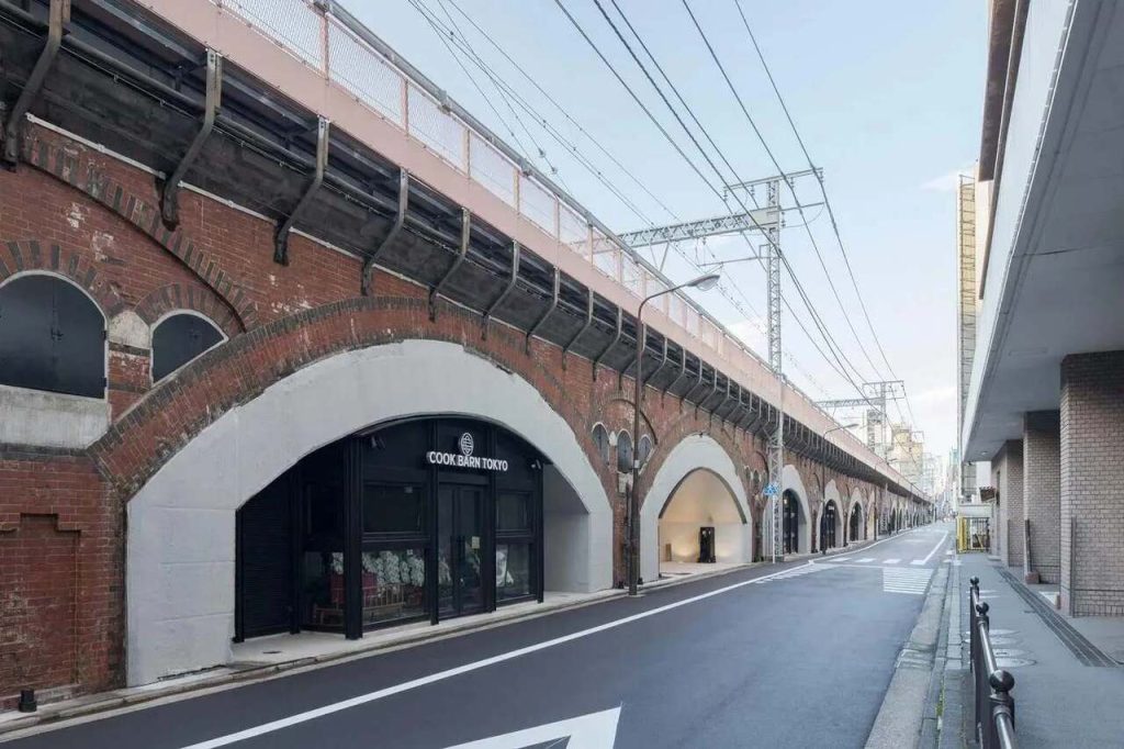 同施設のシンボル的な存在である煉瓦アーチは、ベルリンの高架橋をモデルに建造されたもの。明治43(1910)年から今もなお使用されている現役の高架橋です。特徴的な形を生かしてリノベーションされた天井や入り口からは、100年以上にも及ぶ建物の歴史を感じられます。