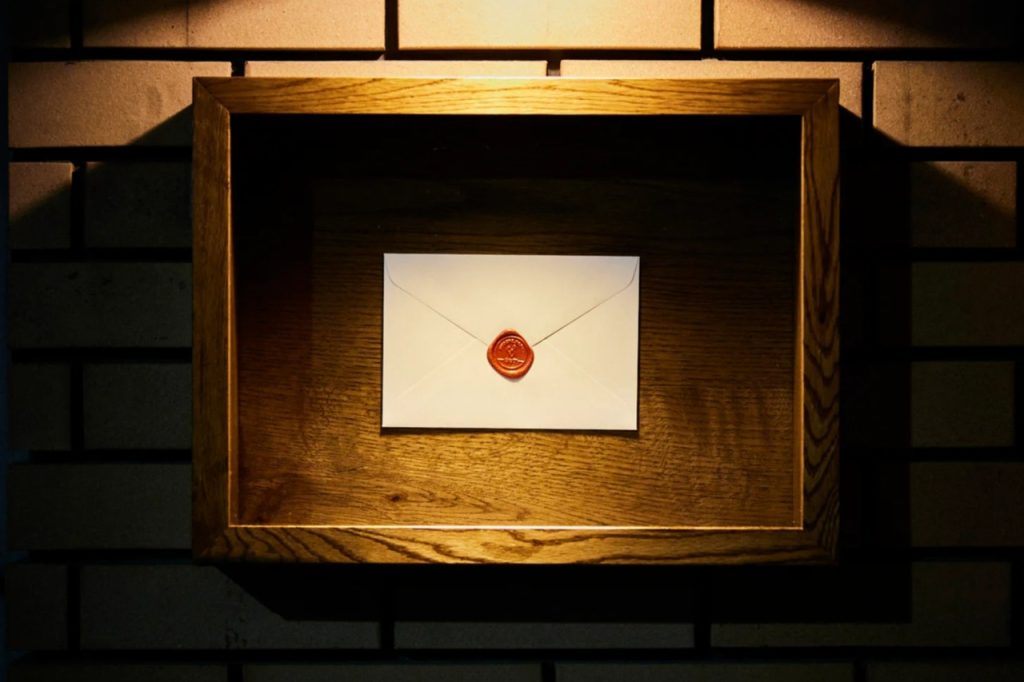 書き終わった手紙は好きな色のシーリングスタンプ(封蝋)で封をし、店内に設置されたポストへ投函。一年後、封筒に記載した住所へ送られます。