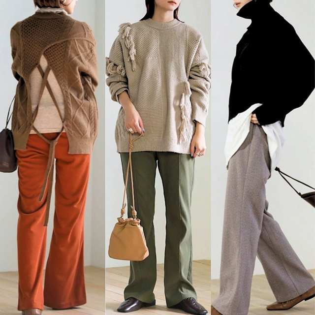 ワンピもいいけれど、たまにはチュニック丈のニットにパンツをあわせていつもと違うスタイリングを楽しむのもアリです。