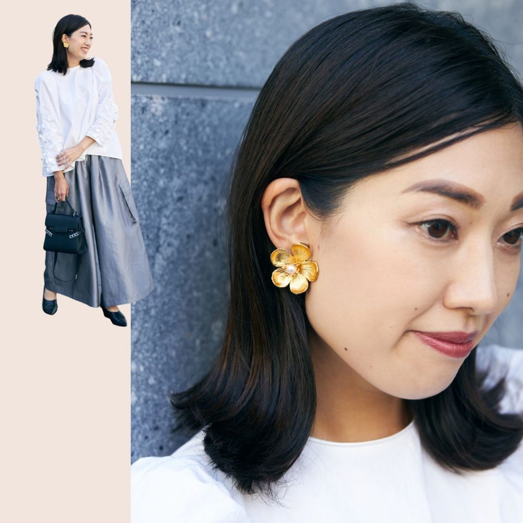 「美容院に通うのが2~4カ月に1回なので、間が開いても外ハネでスタイリングしやすいように段を作らず軽くしてもらっています。子どもが生まれてからは肩の長さでワンカールできる長さをキープしていましたが、今は伸ばしたい気分なのでミディアムヘアを楽しんでいます」池崎郁歌さん/149㎝(事務パート、3歳女の子のママ)