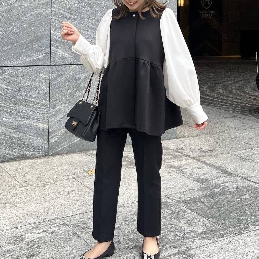 ブラウス×黒パンツは、楽ちんで冬のお出かけにピッタリなコーデです♪