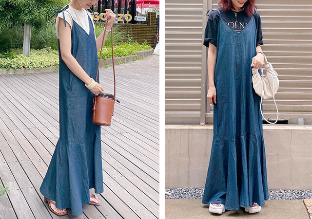 ジャストサイズの着丈を選べるサイズ展開のため、足元はフラットシューズやスニーカーでももちろんOK。カジュアルにも着回せます。